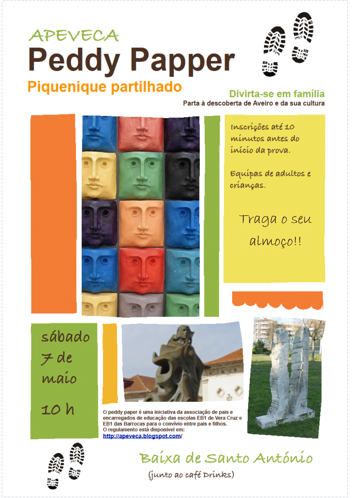 A APEVECA vai realizar no próximo sábado, dia 7 de Maio, um Peddy-Paper pelas ruas da cidade, seguido de almoço partilhado na Baixa de Santo António.