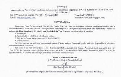 A participação cívica de todos os encarregados de educação é muito importante, ainda mais nos tempos em que vivemo.Mudanças e indefinições que a "escola" atravessa necessita do emprenho de todos.Joaquim Ramos Pinto