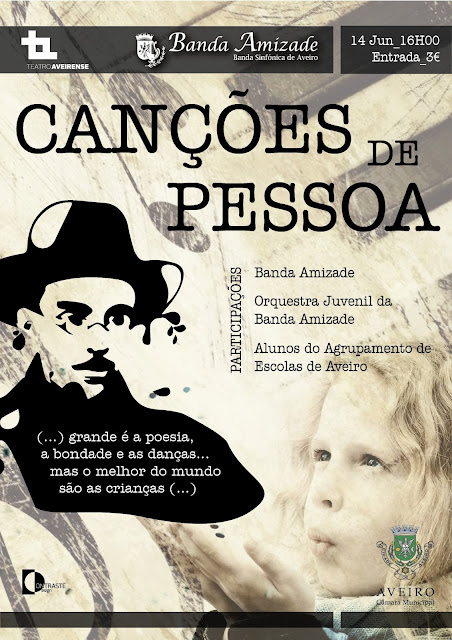 Concerto da Banda Amizade "Canções de Pessoa" com a Orquestra Juvenil da Banda Amizade e os alunos do Agrupamento de Escolas de Aveiro, no dia 14 de Junho, 16h00 no Teatro Aveirense.