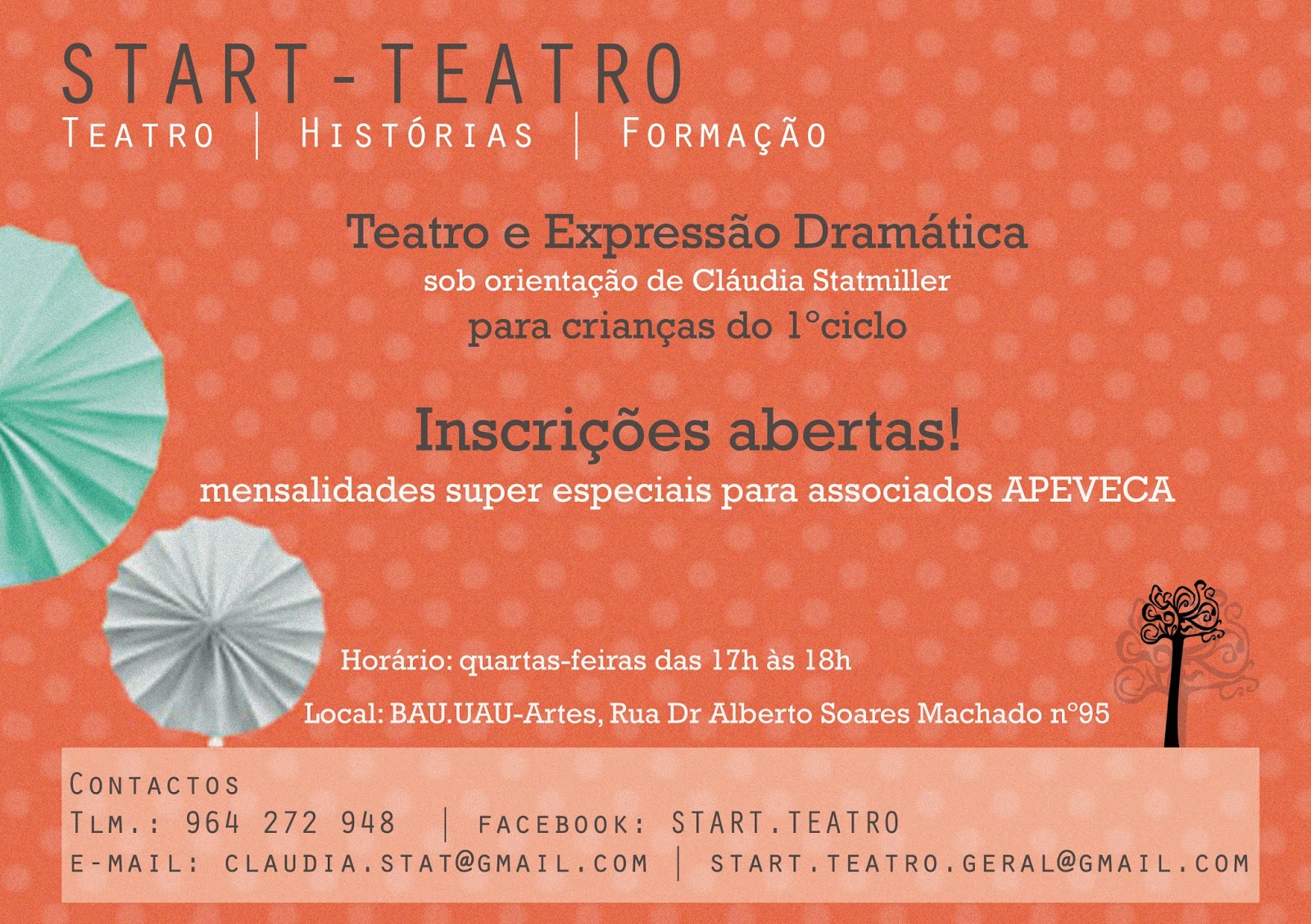 A START-TEATRO informa que se encontram abertas inscrições para o corrente ano lectivo na área de: