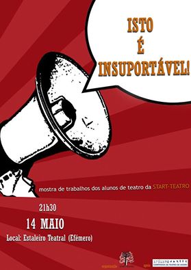 Pela primeira vez juntámos, em palco, todos os alunos das 3 turmas de jovens da START-TEATRO surgindo o espetáculo "ISTO É INSUPORTÁVEL"! Criado a partir de exercícios de improvisação realizados ao longo das aulas.
