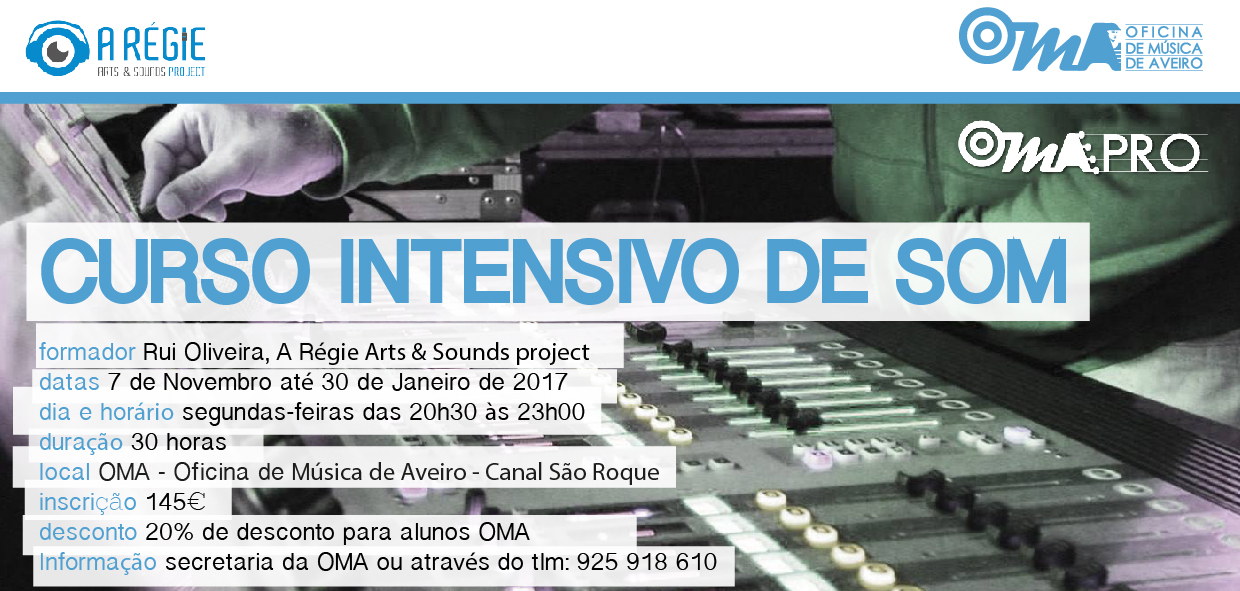 A OMA-Oficina de musica de Aveiro leva a efeito um Curso Intensivo de Som com a duração de 30h